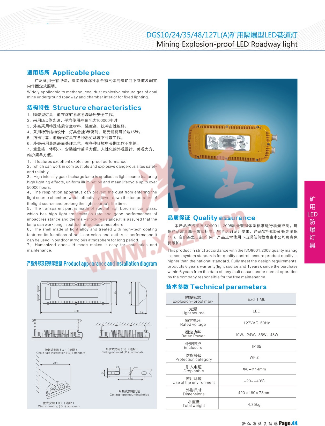 DGS24/35/45/127L(A)礦用隔爆型LED巷道燈