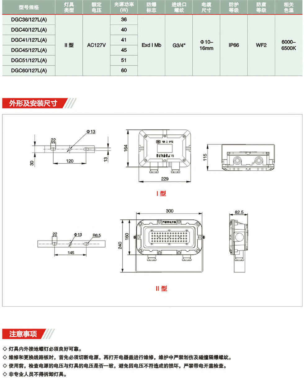 DGC40/41/45/51/60/127L礦用隔爆型LED支架燈