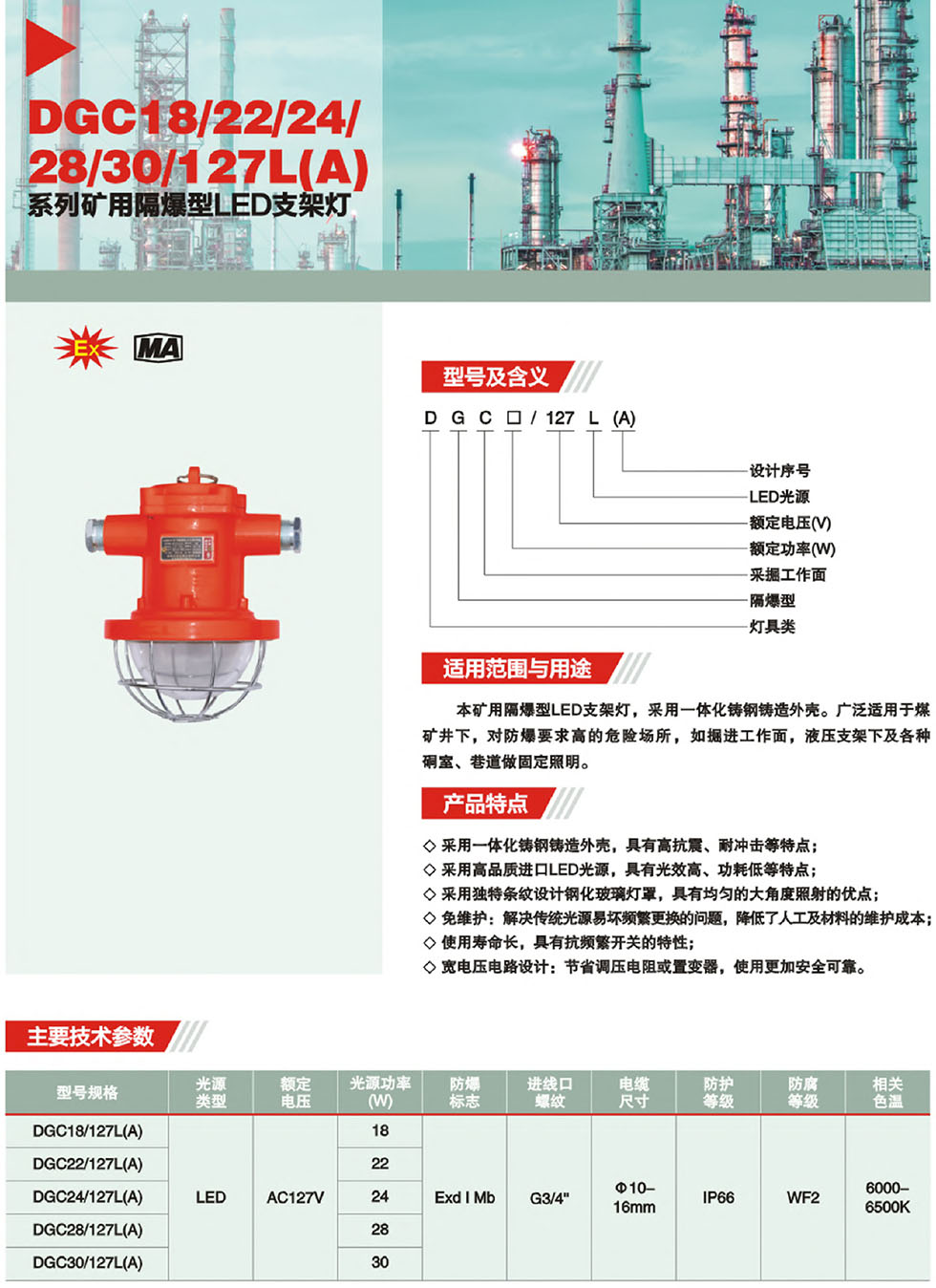 DGC18/22/24/30/127L礦用隔爆型LED支架燈
