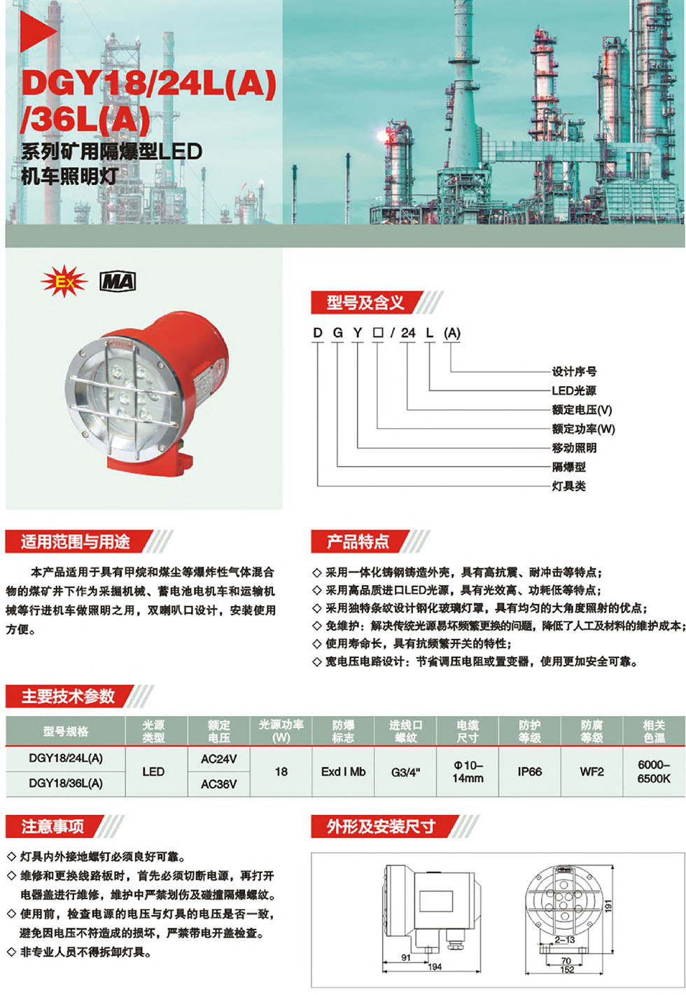 DGY9/12/36/36L/24/127L(A)礦用隔爆型LED機車照明燈