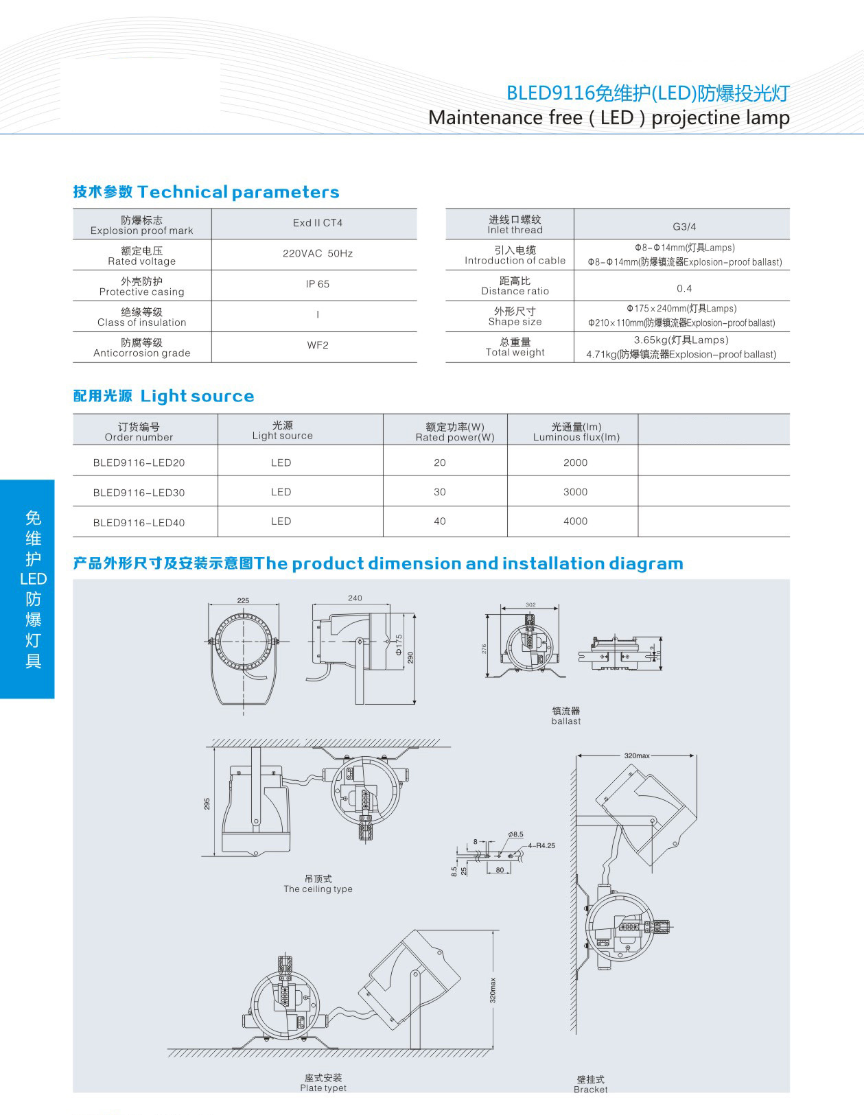 BLED9105A(BFC8120)防爆場(chǎng)內(nèi)免維護(hù)(LED)泛光燈、一體式馬路燈