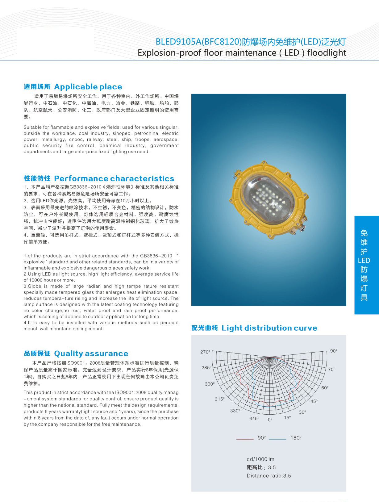 BLED9105A(BFC8120)防爆場內免維護(LED)泛光燈、一體式馬路燈