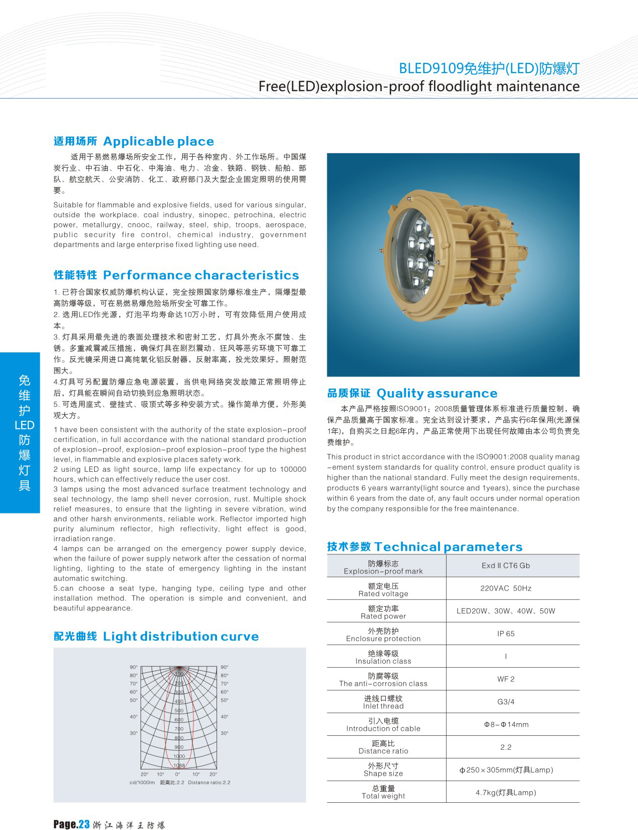 BLED9105A(BFC8120)防爆場(chǎng)內(nèi)免維護(hù)(LED)泛光燈、一體式馬路燈
