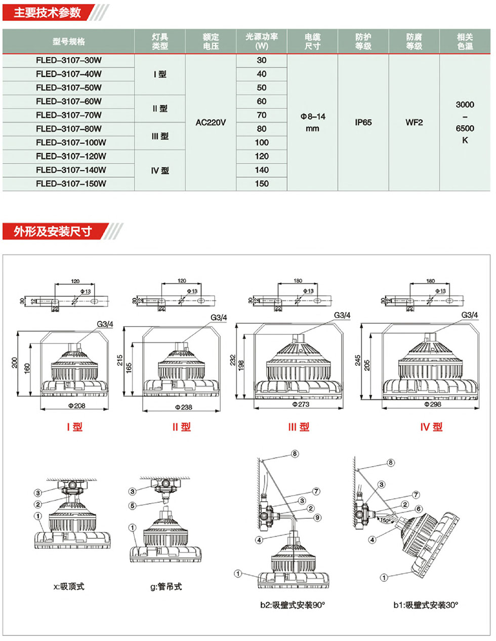30/50/70/80/100/120/150W免維護(三防)LED照明燈
