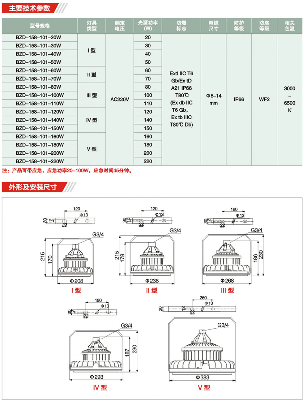 20/50/70/80/100/120/150/200/220W防爆免維護(hù)LED照明燈