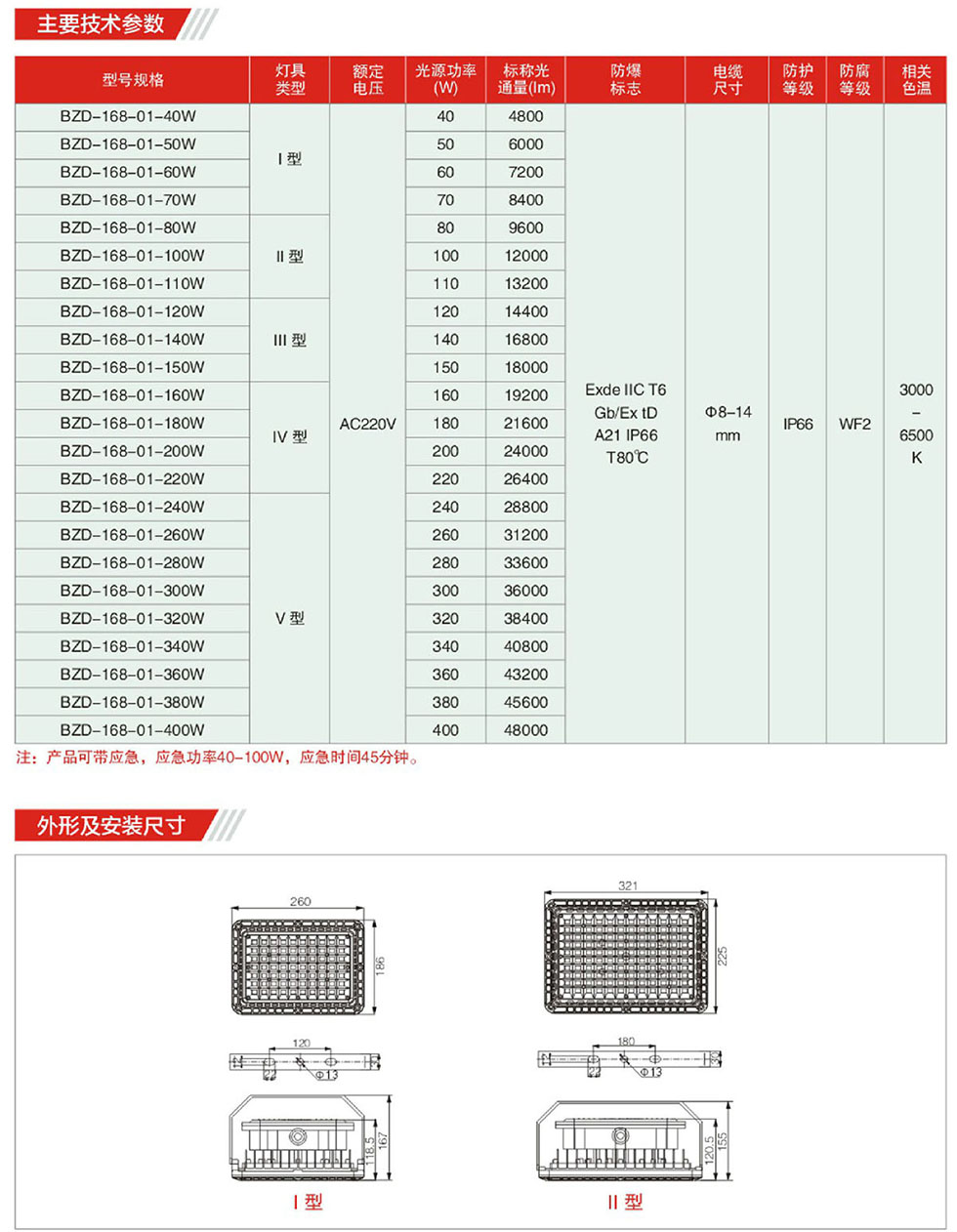 40/50/60/70/80/100/120/150/180/200/240/280/300/360/400W防爆免維護LED泛光燈